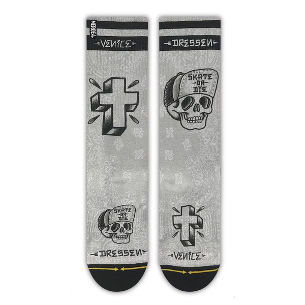 „SKEJTUJ, NEBO ZEMŘI“ Eric Dressen, člen skateboardové síně slávy z Venice v Kalifornii je nejvíce známý svým elegantním, ale agresivním stylem, když projíždí ulice, místní školní dvory a zahradní bazény. Je světově proslulý ve všech disciplínách téhle kultury, které říkáme skateboarding. Eric zdobil stránky časopisu Skateboarder Magazine od poloviny do konce 70. let a Thrasher, Transworld, Slap, Poweredge a dalších publikací v 80. a 90. letech. Podílel se na knihách a bezpočtu videí. Od raných let je významnou součástí skateboardového hnutí a stále cestuje po celém světě na čtyřech kolečkách. Když neskejtuje ani netvoří umělecká díla, udržuje své kreativní múzy v pohybu tetováním. Eric posledních 15 let tetuje a dělá umělecké koláže pro významné skateboardové značky. Pokud byste měli Erica Dressena popsat pěti přívlastky, muselo by to být kreativní, tichý, pokorný, rychlý a silný.