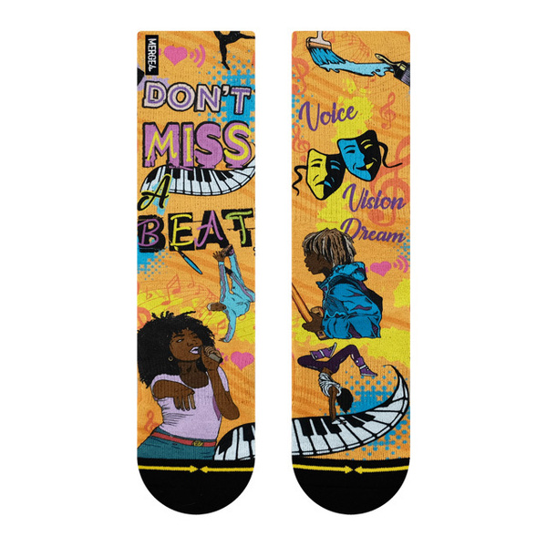 Funkční ponožky s grafikou od Taylora Reinholda. Taylor se spojil s nadací Don’t Miss a Beat, Inc., jejíž cílem je propojit hudbu, umění s cílem inspirovat a poučit děti dospívající v komunitách v Brooklynu a Woodstocku. Ponožky odvádí vlhkost, tlumí nárazy díky zesílenému chodidlu a zlepšují krevní oběh díky gradientnímu tlakovému pletení. Klenbu pak drží specálně pletený elastický pás, který ti zajistí stabilitu nohy v botě. Bys neřek/la možná viď, že o tebe takhle dokonale může pečovat "ponožka"??